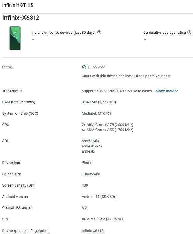 يظهر Infinix Hot 11 و Infinix Hot 11S على وحدة تحكم Google Play