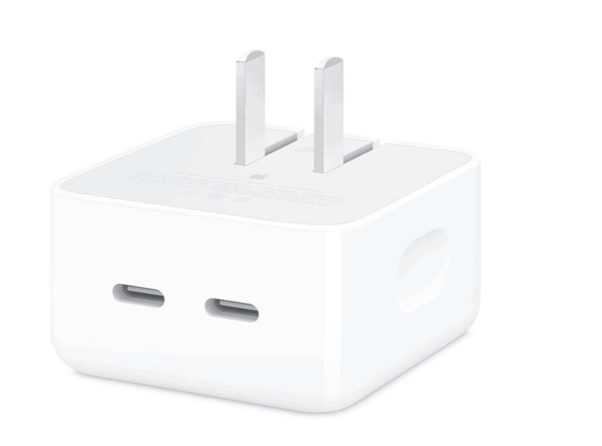 يصف موقع الويب الرسمي لشركة Apple جهازي الشحن على النحو التالي “سواء في المنزل أو في المكتب أو أثناء التنقل ، يتيح لك محول الطاقة الصغير بمنفذ USB-C المزدوج بقدرة 35 وات شحن جهازين بسهولة في نفس الوقت. إنه صغير ورائع ، ويمكن طي القابس لسهولة النقل والتخزين “.