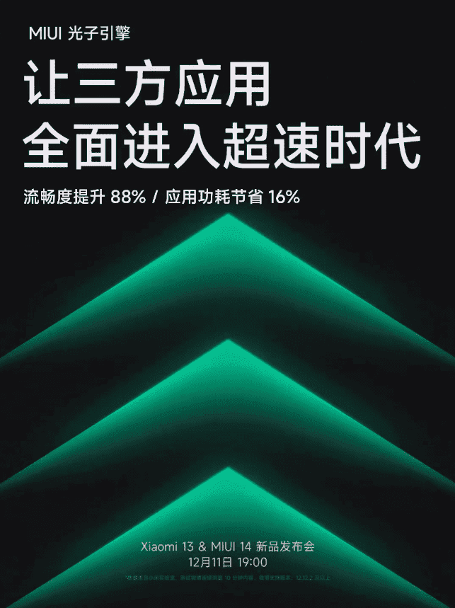 قدمت شاومي محرك الفوتون للمساعدة في تسريع تطبيقات الطرف الثالث. يمكن أن يكون أي تطبيق تقوم بتنزيله من أي مصدر أفضل بكثير في السرعة مع نظام MIUI 14 الجديد. يعمل محرك الفوتون على تحسين عمق نواة Linux ويجلب تجربة سلسة لا مثيل لها لمستخدمي MIUI. يكشف ملصق رسمي يكشف عن محرك الفوتون MIUI 14 أن تطبيقات الطرف الثالث يمكن أن تزيد بنسبة 88٪ في السرعة .
