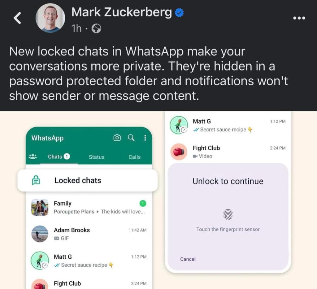 أعلن مارك زوكربيرغ، مؤسس موقع فيسبوك، عن تحديثات جديدة في تطبيق واتساب لجعل المحادثات أكثر خصوصية وأمانًا للمستخدمين. ويأتي ذلك في ضوء المخاوف المتزايدة حول الخصوصية على الإنترنت.