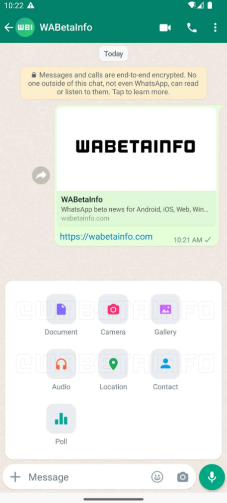 ظلت قائمة مرفقات دردشة WhatsApp كما هي لفترة طويلة. هذا يجعلها تبدو قديمة بعض الشيء ويقوم WhatsApp بإعادة تصميمها لمنحها تصميما أكثر حداثة. تبدو الواجهة الجديدة أبسط وأنظف بكثير مما لدينا الآن.