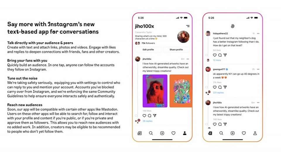 ويشير التقرير إلى أن ميتا بدأت بالفعل في التواصل مع صناع المحتوى المشهورين والشخصيات العامة على إنستجرام لإنشاء حسابات على المنصة الجديدة وتجربتها، وهذا يعد خطوة إيجابية لتحفيز المستخدمين على استخدام المنصة الجديدة.