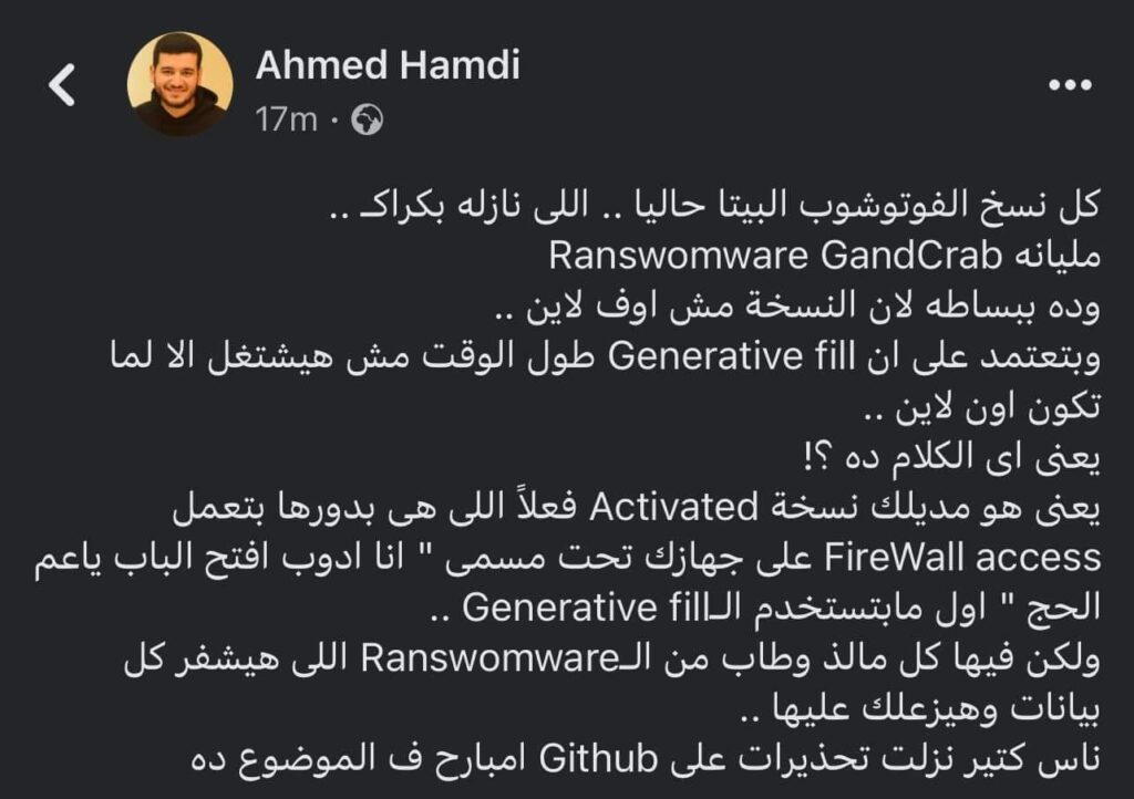 أطلقت شركة أدوبي مؤخرًا خاصية جديدة في برنامج فوتوشوب تسمى Generative fill، والتي تستخدم الذكاء الاصطناعي لإنشاء الصور بشكل تلقائي. ومع ذلك، توجد بعض النسخ التجريبية المقرصنة من البرنامج تستخدم هذه الخاصية بشكل سلبي، حيث تستغل هذه النسخ خاصية Generative fill لفتح الأبواب الخلفية في جهاز المستخدم، وتسمح للمهاجمين بتثبيت البرامج الخبيثة مثل GandCrab Ransomware.