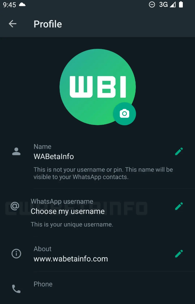 تم رصد ميزة اسم المستخدم في الإصدار التجريبي 2.23.11.15 لنظام Android. تتيح الميزة لمستخدمي WhatsApp تحديد اسم مستخدم فريد مرفق بحسابهم. المحادثات التي تبدأ باستخدام اسم مستخدم مشفرة تماما بين الطرفين. قد تعني هذه الميزة أنه في المستقبل ، يمكن للمستخدمين العثور على بعضهم البعض من خلال أسماء المستخدمين الخاصة بهم بدلا من استخدام رقم هاتف.