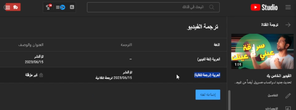 من هنا، يمكنك الوصول إلى خانة الترجمة الخاصة بفيديوهاتك. قم بالدخول إلى الفيديو الذي ترغب في تحسين ترجمته، وتأكد من أن يوتيوب يفهم الكلام الموجود فيه.